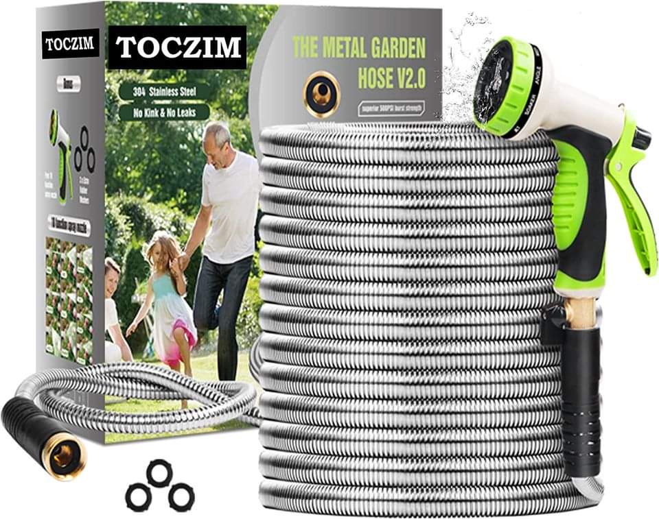 TOCZIM Metal Garden Hose 25FT – Flexible Lightweight Tough 304 Stainless Steel Hose with 10-Way Free Nozzle has an amazing coup0n to clip #ad