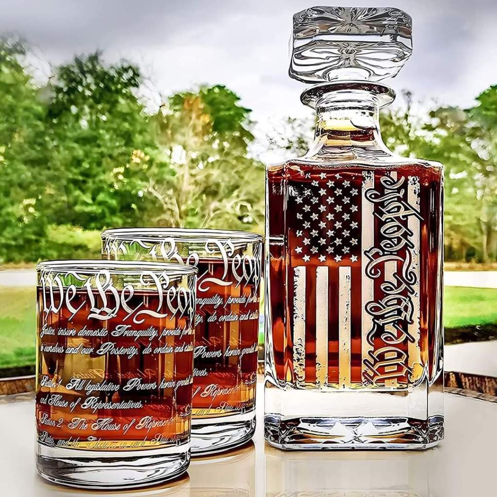 YJGS Whiskey Decanter Set -750ml Whiskey Decanter Engraved We The People American Flag Decanter Set with 2 Glasses have an amazing coup0n to clip available #ad