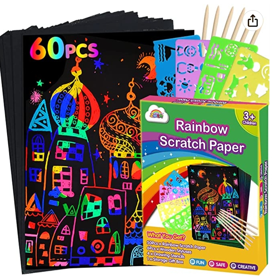 ZMLM Scratch Paper Art Set: 60Pcs Magic Drawing Art Craft Kid Black Scratch Off Paper Supply Kit is on 50% pr!ce drōp #ad