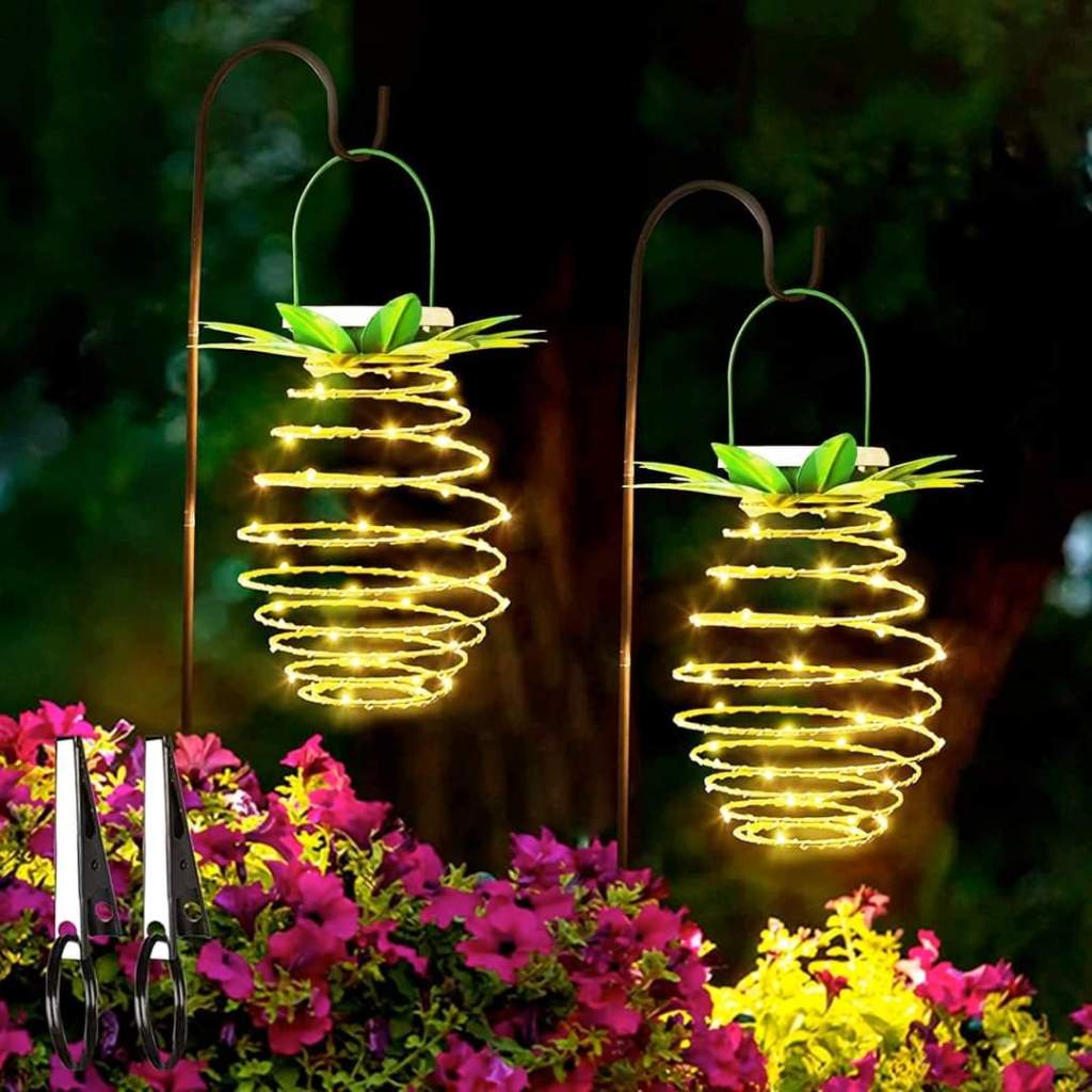 Tcamp 2 Pack 60LEDS Pineapple Solar Lights Outdoor Solar Lights Hanging Solar Lantern with Handle, is on dr0p #ad