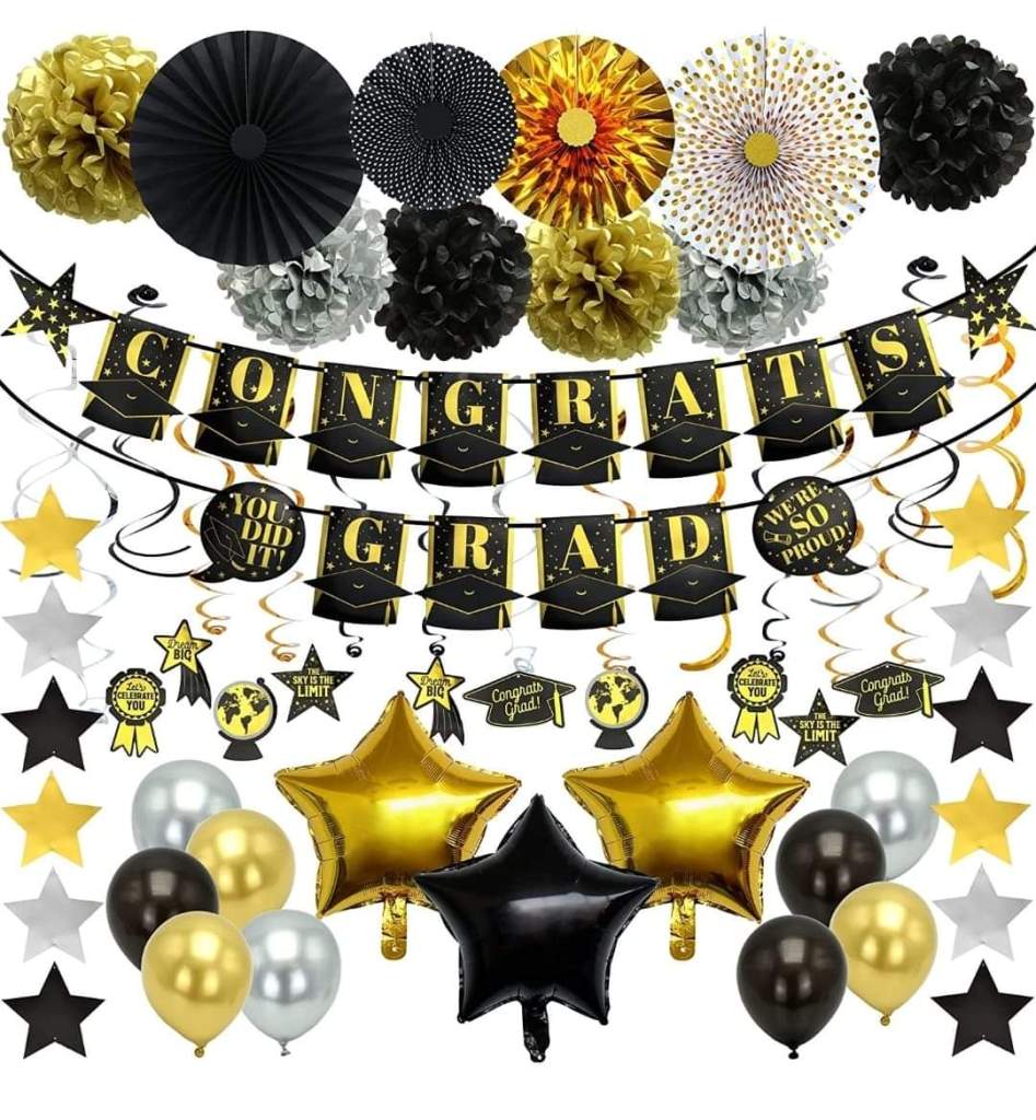 JOYIN 41 Pcs 2023 Graduation Party Decoration Set with Banner, Hanging Swirls Strings, Paper Fans, Paper Pom Poms, Foil Ballons and Latex Ballons, Graduation Party Favors, Graduation Party Supplies dr0ps 50% with 8GY4I2YV #ad