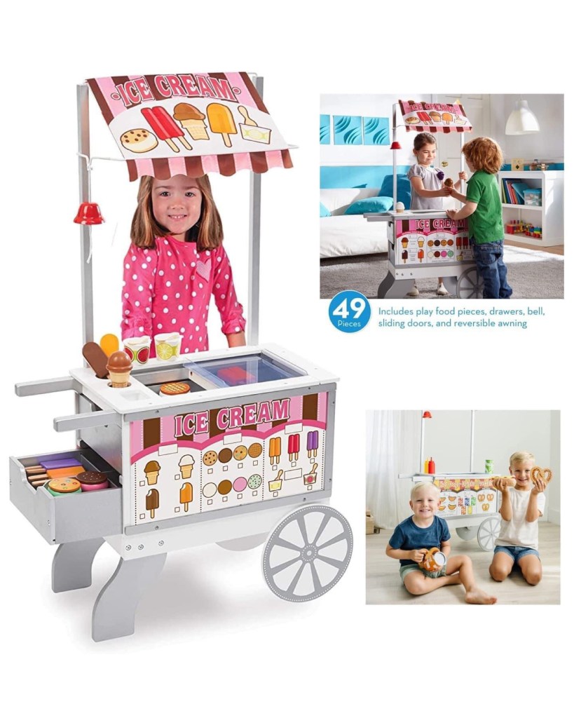 Dying over this D EAL!!! Melissa and Doug 2 in 1 Snacks and sweets food cart. Ice Cream Cart can be switched to a hot dog stand with a flip of the sign/ reversible awning! It comes with 40+ play foods that are the incredible Melissa and Doug quality to last years. What a gift #ad #rd04282023 please say if you snag. πππ