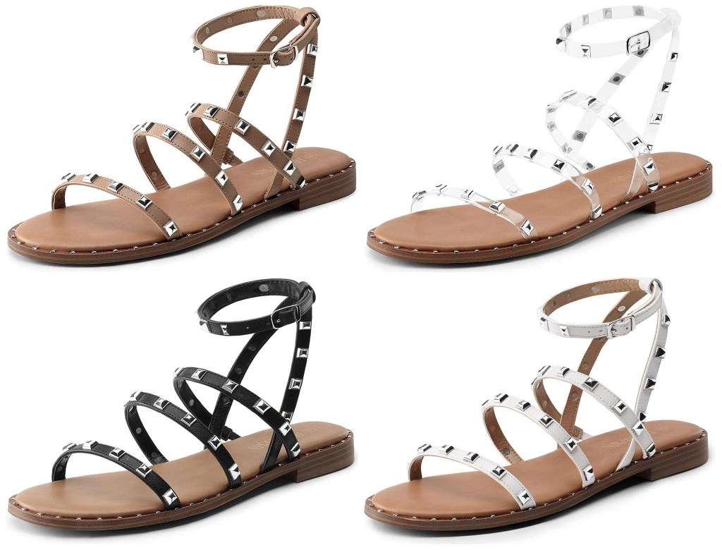 These studded gladiator sandals are a great dupe for the Steve Madden Travel Sandals…and just $16.99 prime shipped with the code 41KKLRFF!!! #ad