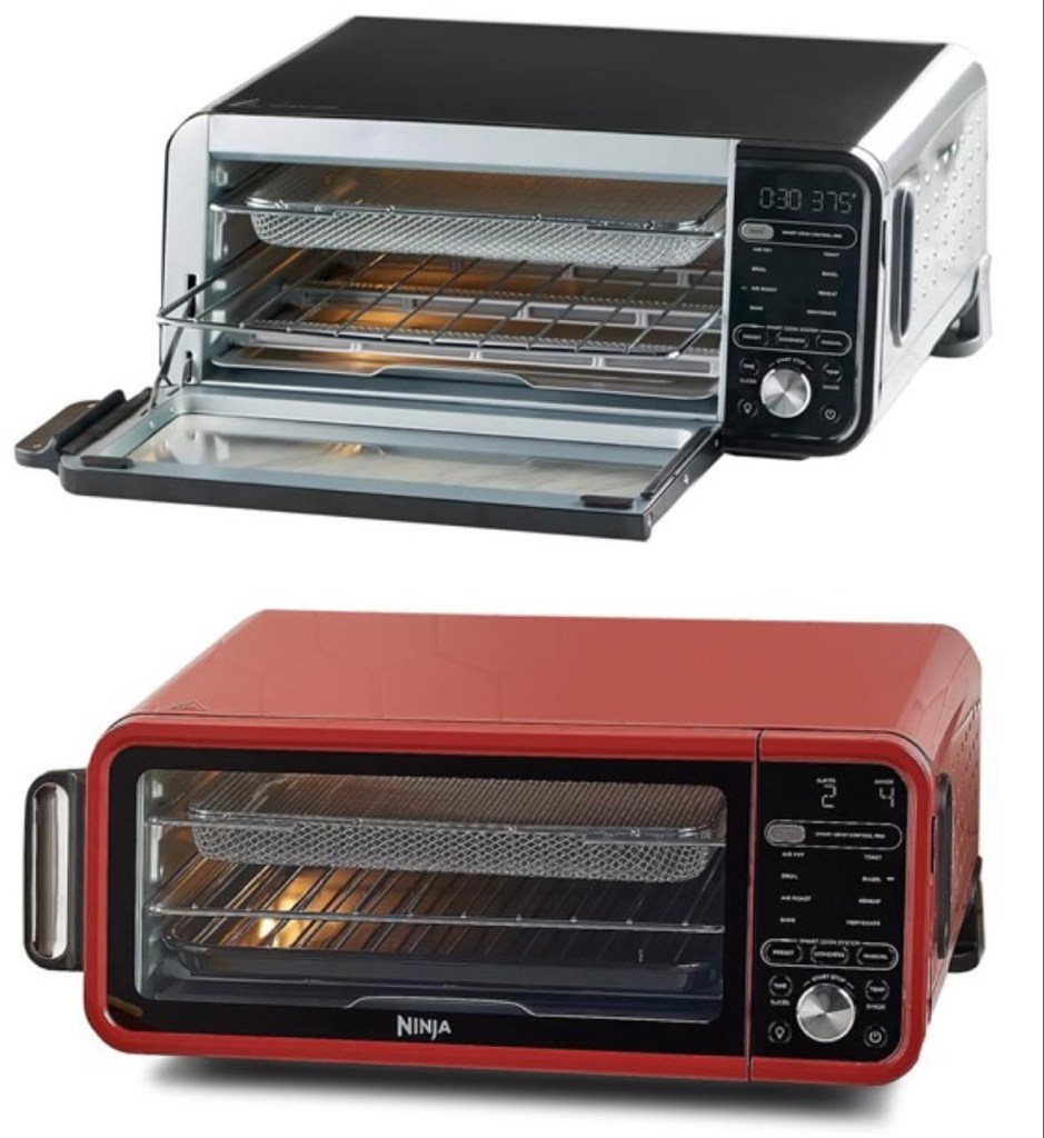 OMG what a steal! Snag a Ninja Digital Air Fry 10-in-1 XL Smart Oven for 99! These retail for 300. These are certified refurbished which means they are used but in perfect working condition. 10 functions include Air Fry, Air Roast, Bake, Broil, Toast, Bagel, Dehydrate, Reheat, Temperature Probe, and Doneness.