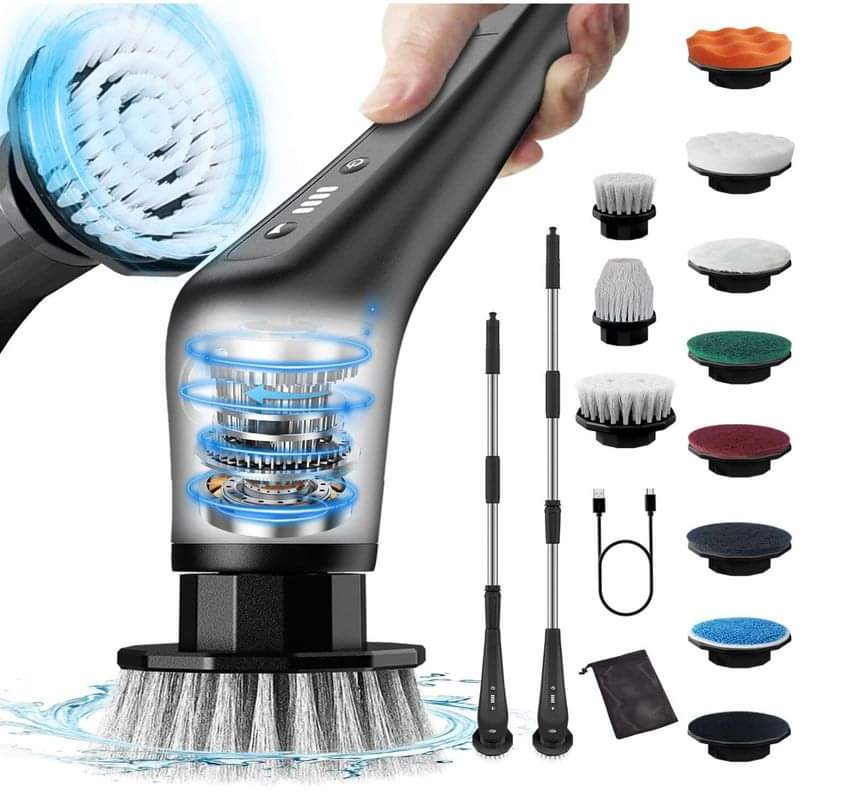 Electric Spin Scrubber, Electric Bathroom Scrubber,Cordless Shower Scrubber with Adjustable Extension Arm for Bathroom, 10 Brushes for Bathtub #ad