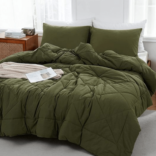 This 3-piece Olive Green Bedding Set is on ⚡ Deal + apply code 30SGE9XE at checkout for additional savings! You can grab a set in size queen or king for between $36.49-$38.49! Tell us if you got it! #ad