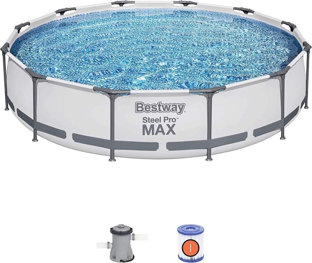 Bestway Steel Pro MAX 12 Foot x 30 Inch Round Metal Frame Above Ground Outdoor Backyard Swimming Pool Set with 330 GPH Filter Pump #ad