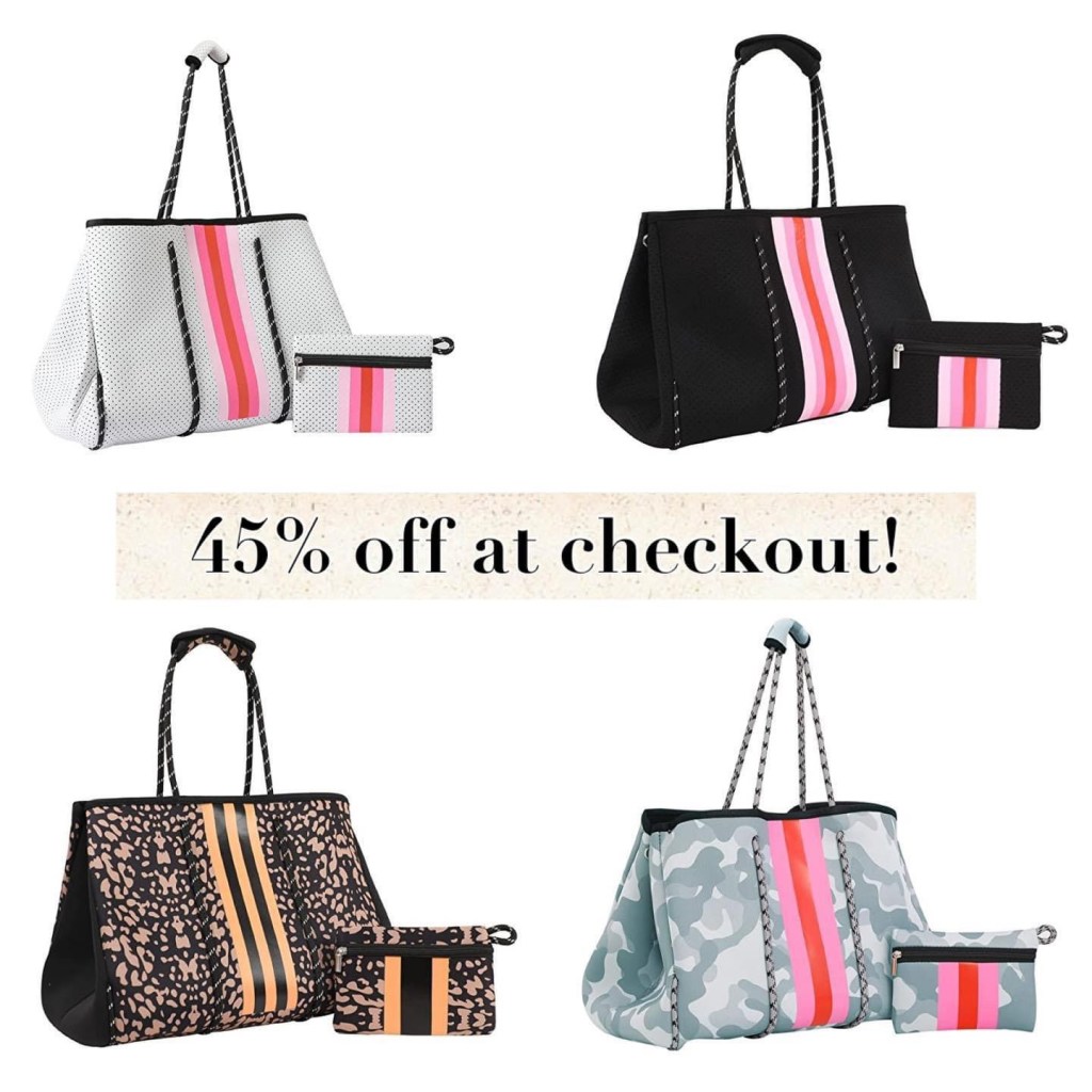45% off at checkout! We use our neoprene tote bags all summer long, perfect for busy mom life. These are dropping 45% off at checkout! #ad #rd05152023 let me know if you grab 👇👇👇