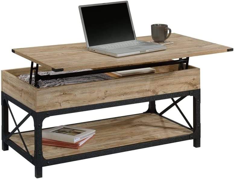 Sauder Steel River Lift-top Coffee Table, L: 41.30″ x W: 22.32″ x H: 18.58″, Milled Mesquite Finish ,#ad