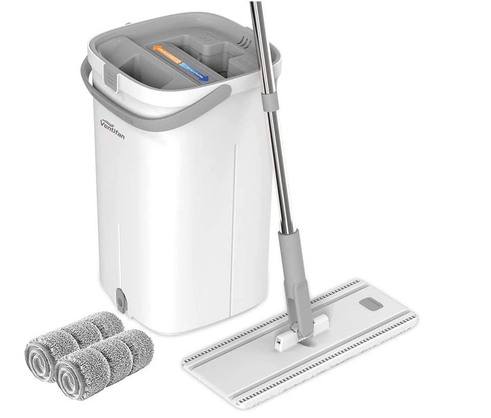 Ventifan Flat Mop and Bucket Set, Hands Free Flat Floor Mop,Separates Dirty and Clean Water,Wet and Dry Use,Self Cleaning Flat Mops for Floor Cleaning, Mop and Bucket System
