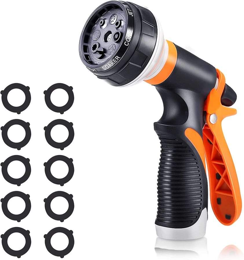 LUSIMO Garden Hose Nozzles High Pressure Hose Sprayer Nozzle with 8 Patterns Water Hose Nozzle with Heavy Duty Rubber Handle 10 Gaskets for Watering Plants and Lawn Washing Cars Showering Pets ,#ad