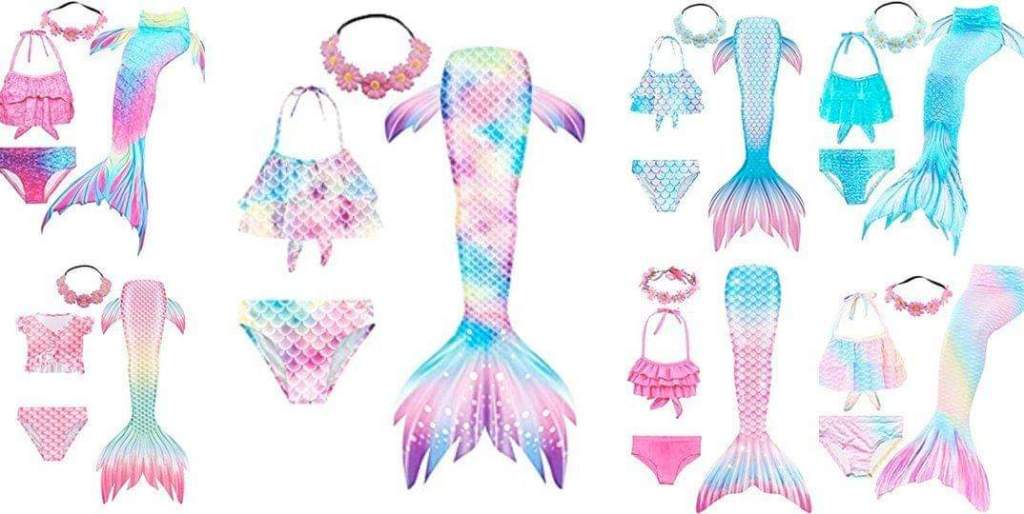 Girl’s 4 Pcs Swimsuit Mermaid Tails for Swimming Princess Mermaid Costume Bikini Set for 3-12Y ,#ad