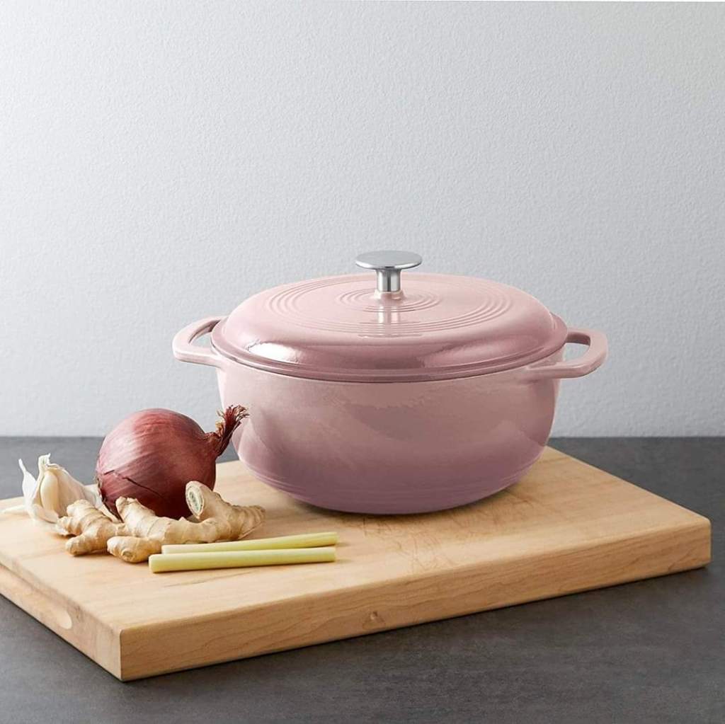 Amazon Basics Enameled Cast Iron Covered Dutch Oven, 4.3-Quart, Light Pink