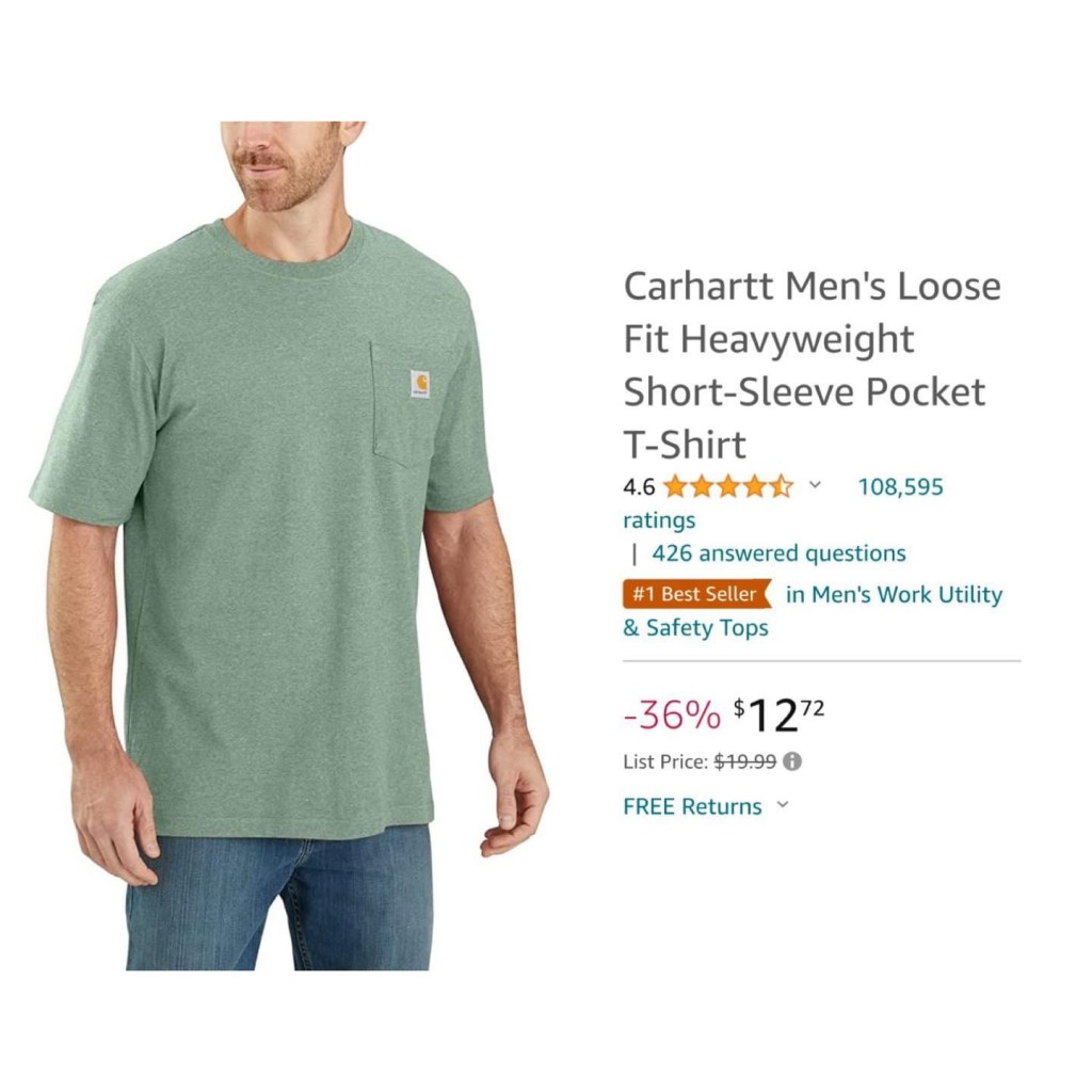 Woah! Select sizes of this color Carhartt t-shirt are only 12.72 – My husband has this shirt and sizes down one size. #ad #rd05212023 let me know if you grab 👇👇👇