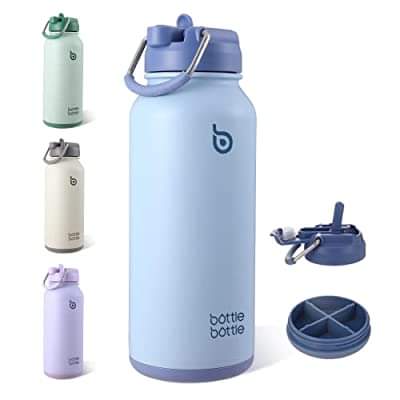 BOTTLE BOTTLE 32oz Insulated Water Bottle Stainless Steel Sport Water Bottle with Straw Dual-use Lid Design for Gym with Pill Box (blue) 55% at checkout +clip the qpon ,#ad