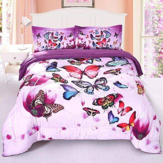 50% when you clip the qpon JW6A2ATC Butterfly Comforter Set Twin, 3 Piece Purple Pink 3D Butterfly Twin Bedding Sets for Girls ,#ad
