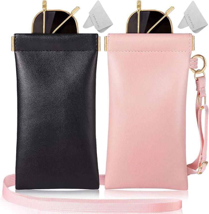 CHICECO Squeeze Top Sunglass Case – Portable Eyeglasses Pouch with Adjustable Lanyard Soft Leather Glasses Case 2 Pack for Women ,#ad