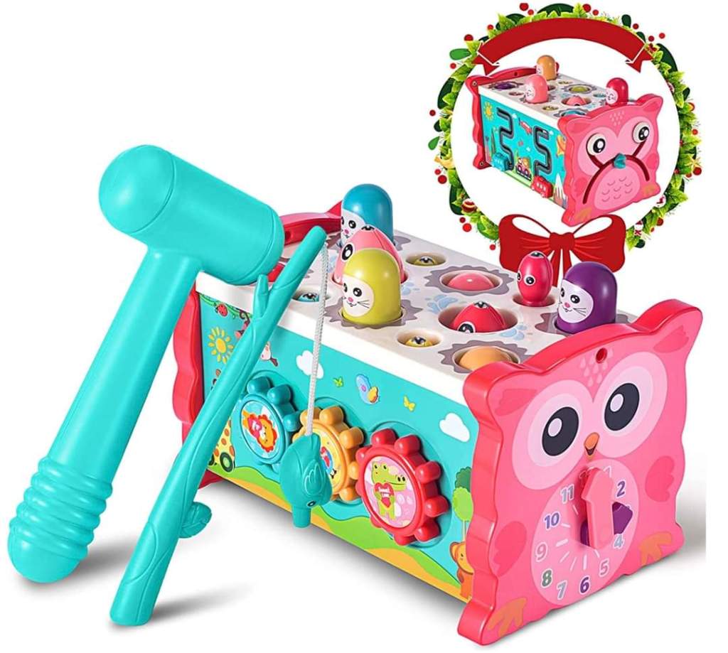 DOQUO Pink Early Baby Development Sensory Montessori Multifunctional Toys 12-18 Months Educational Hammering Pounding for 1+ Years Gift ,#ad