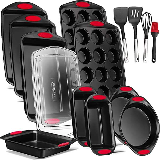 NutriChef 15-Piece Baking Pan Set – PFOA, PFOS, PTFE Free Flexible Nonstick Black Coating Carbon Steel Bakeware