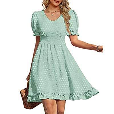 Women Summer Dresses V Neck Short Sleeve Swiss Dot Mini Dress with Pockets available in plenty of colors #ad