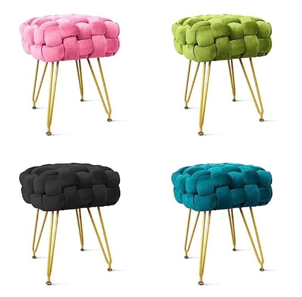 ECOMEX Square Velvet Vanity Stool with Metal Legs and Padded Seat, Square Vanity Stool for Makeup Room Upholstered Makeup Ottoman for Living Room Bedroom Dressing Room, Black