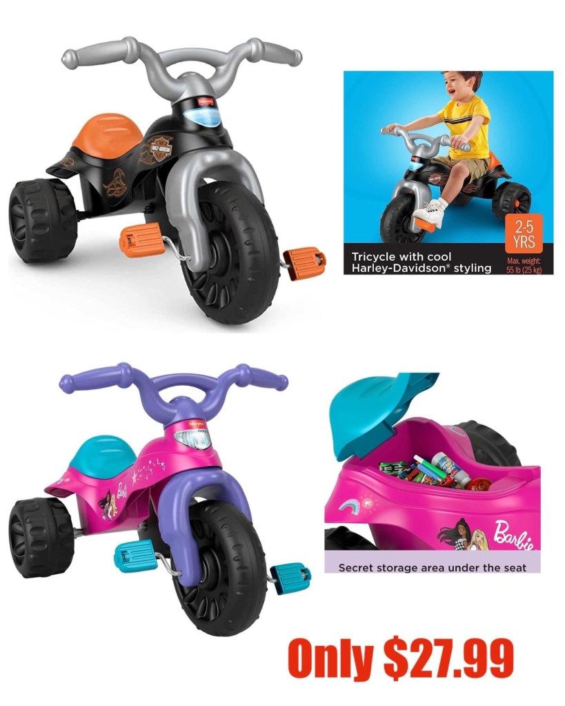 🔥🔥 ONLY 27.99! Fisher-Price Harley-Davidson or Barbie Tricycle Tough Trike Bike with Handlebar Grips and Storage for Kids!!! Super fun!! Part of kids Toys from Fisher-Price, Power Wheels, and more DOTD. Dont Miss!!ad #rd06182023 please say if you get one. 👇👇👇