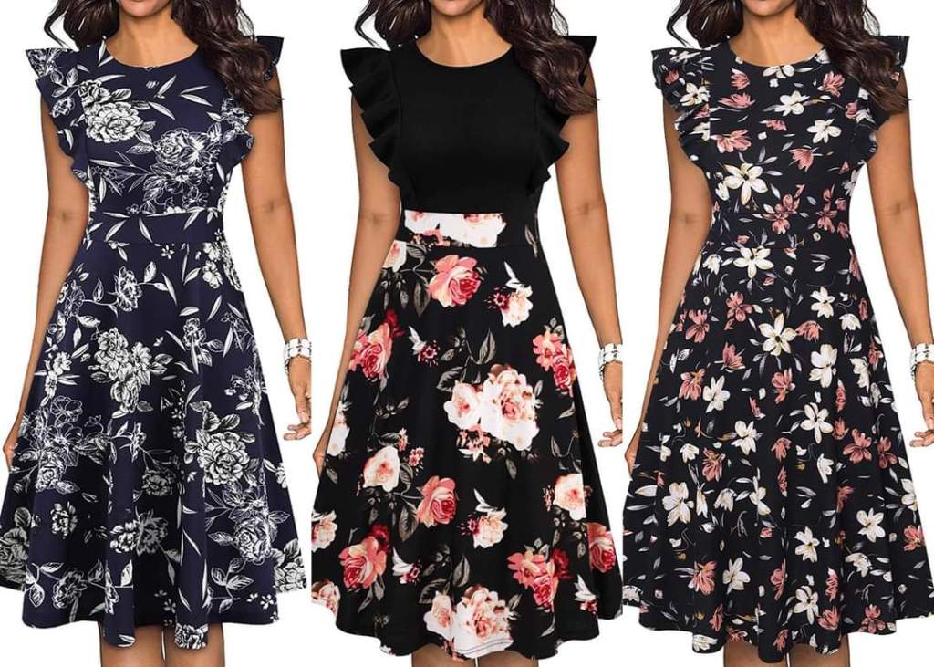IHOT Women’s Vintage Ruffle Floral Flared A Line Swing Casual Cocktail Party Dresses with Pockets are 60% off at checkout! #ad