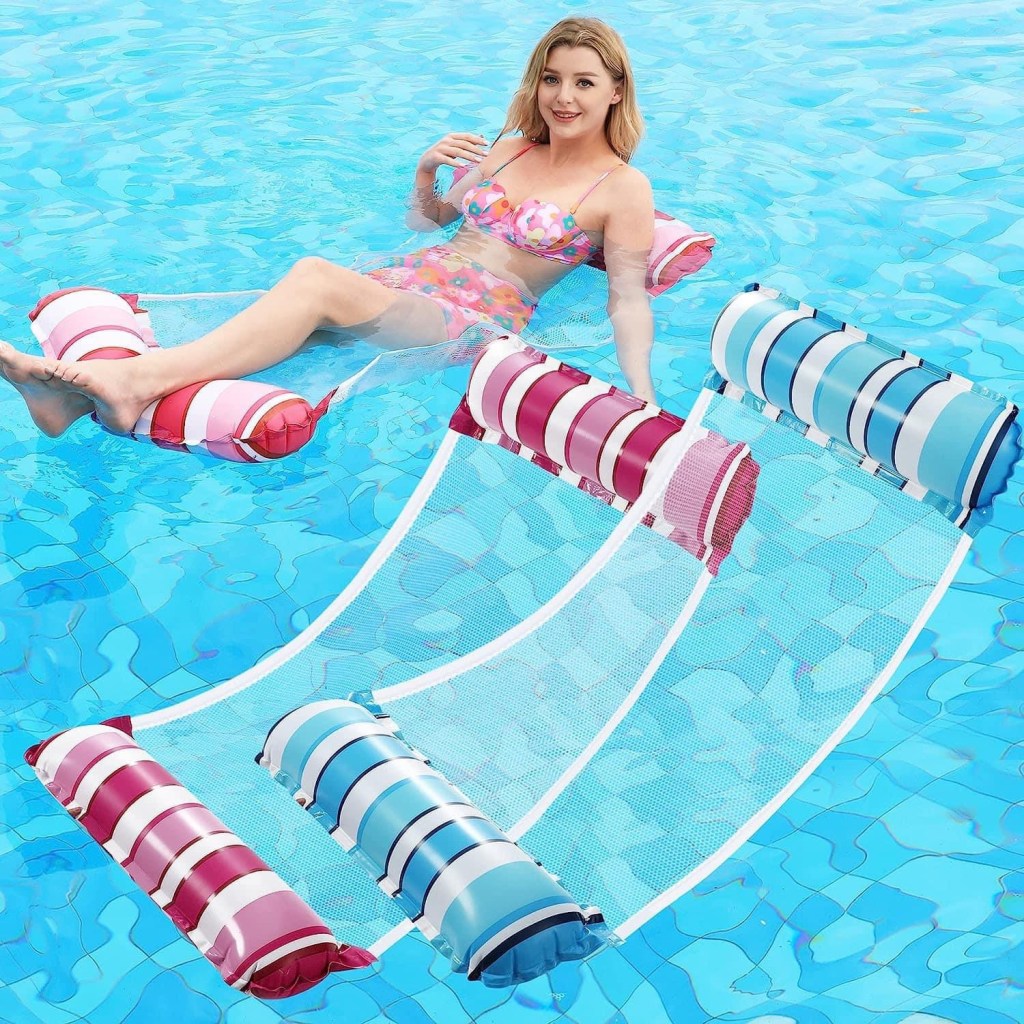 💦💦 The inflatable hammock floats have a fabulous savings on the 2-packs! Perfect for vacations because they are lightweight and easy to pack!