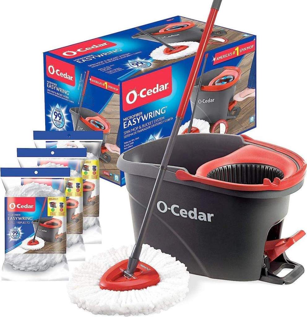 O-Cedar Easywring Microfiber Spin Mop & Bucket Floor Cleaning System with 3 Extra Refills #ad