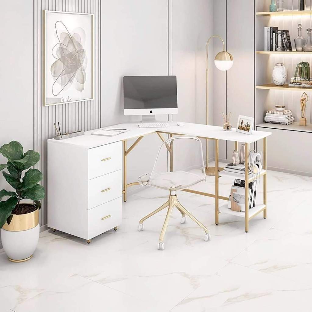 Techni Mobili L Shaped Desk – Two-Toned Computer Desk with Drawers & Storage Shelves – Simple Modern Furniture & Home Office #ad