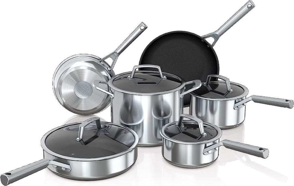 Ninja C69500 Foodi NeverStick Stainless 10-Piece Cookware Set with Glass #ad
