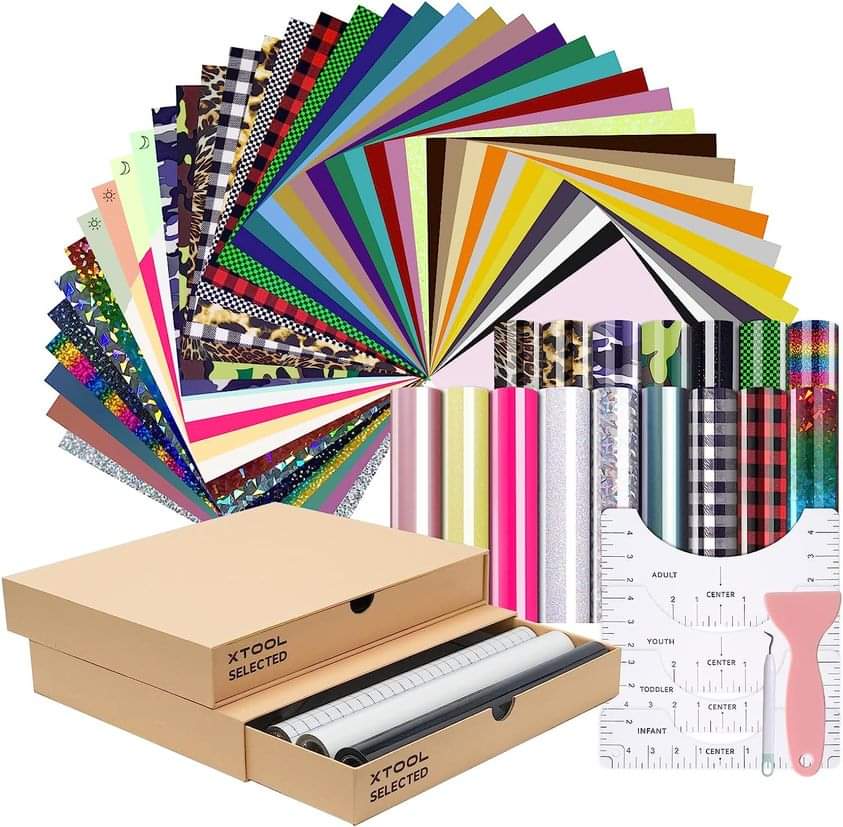Heat Transfer Vinyl Bundle, 60 Pcs + 3 Rolls Iron On Vinyl with Transfer Tape & Weeding Tool, dr0ps when you clip the qpon #ad