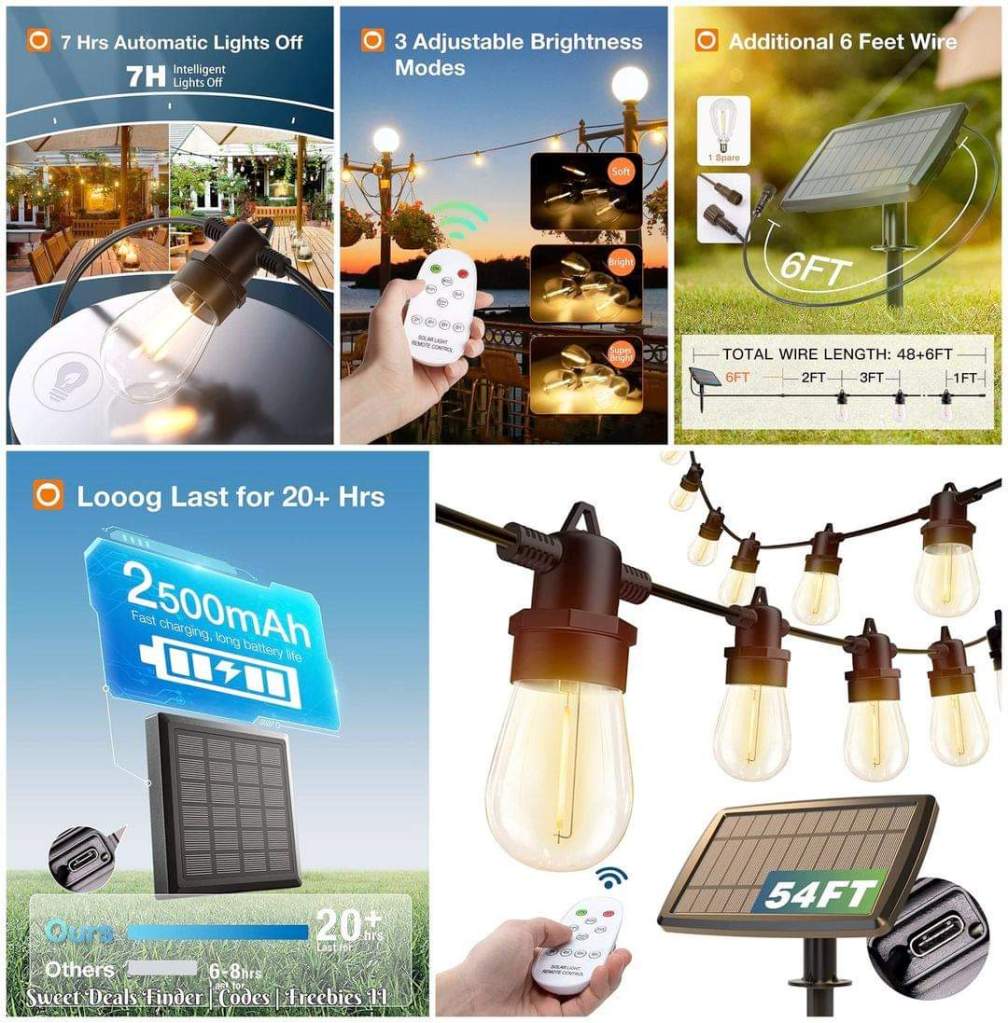 addlon 54(48+6) FT Solar String Lights Outdoor Waterproof with USB Port & Remote Control #ad