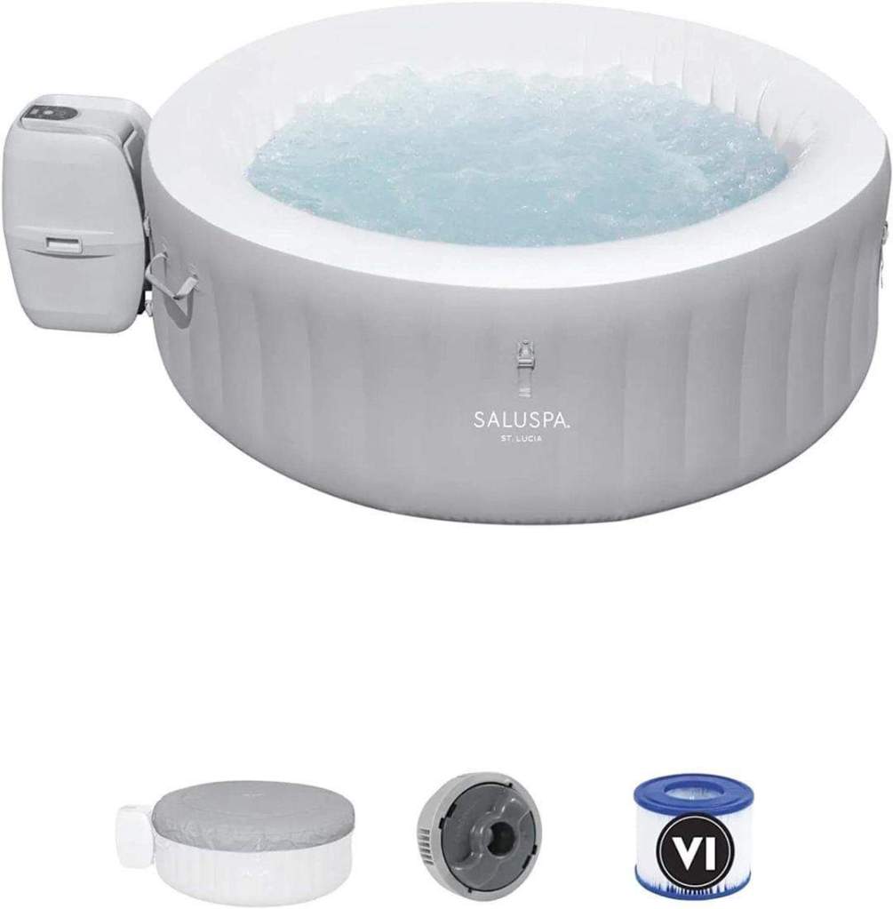 Bestway St. Lucia SaluSpa 2 to 3 Person Inflatable Round Outdoor Hot Tub with 110 Soothing AirJets, Filter Cartridge, Pump, and Insulated Cover, Gray #ad