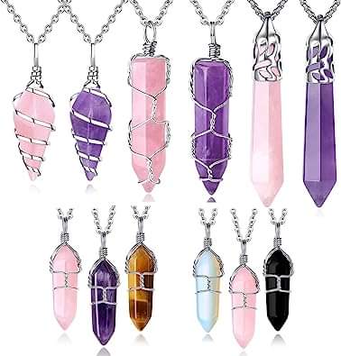 QINJIEJIE Crystal Necklace Healing Crystal Jewelry Reiki Spiritual Natural Quartz Stones Gemstone Hexagonal Point Wire Wrapped Necklaces #ad
