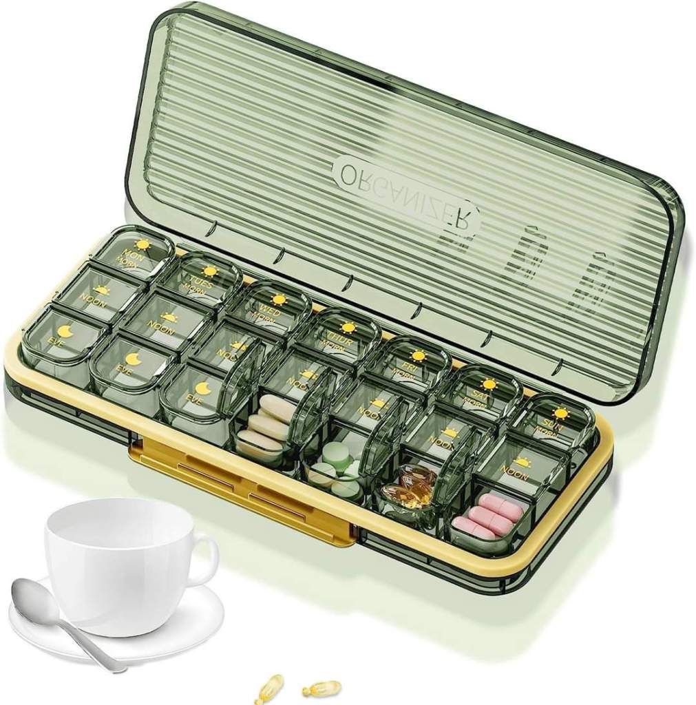 Pill Organizer Travel-Pocket Pharmacy with Labels Pill Box 7 Day/Pill Organizer 3 Times a Day Portable Pill case Large Pill Organizer for Travel, Work, Medication Planning for The Elderly