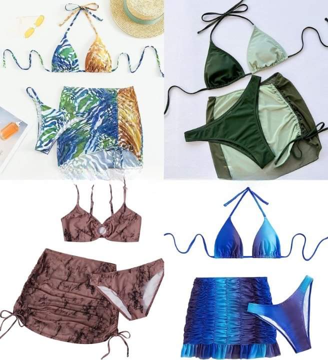 GORGLITTER Women’s 3 Piece Floral Swimsuits Halter Triangle Thong Bikini Sets with Beach Skirts Tell us if you got it! #ad