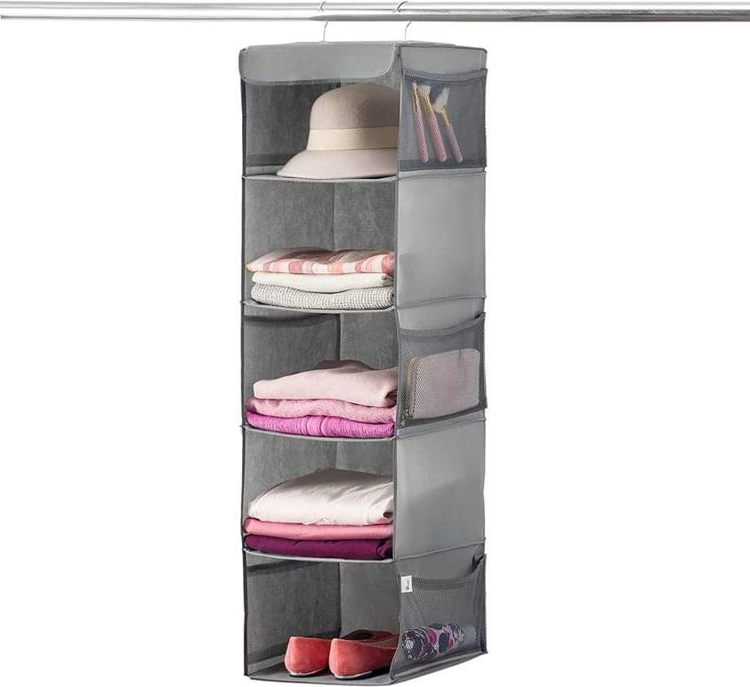 ZOBER Hanging Closet Organizer and Storage Shelves – 5-Shelf Wardrobe Clothes Organizer for Dorm Room, Baby Nursery, Small Closet Tell us if you got it! #ad
