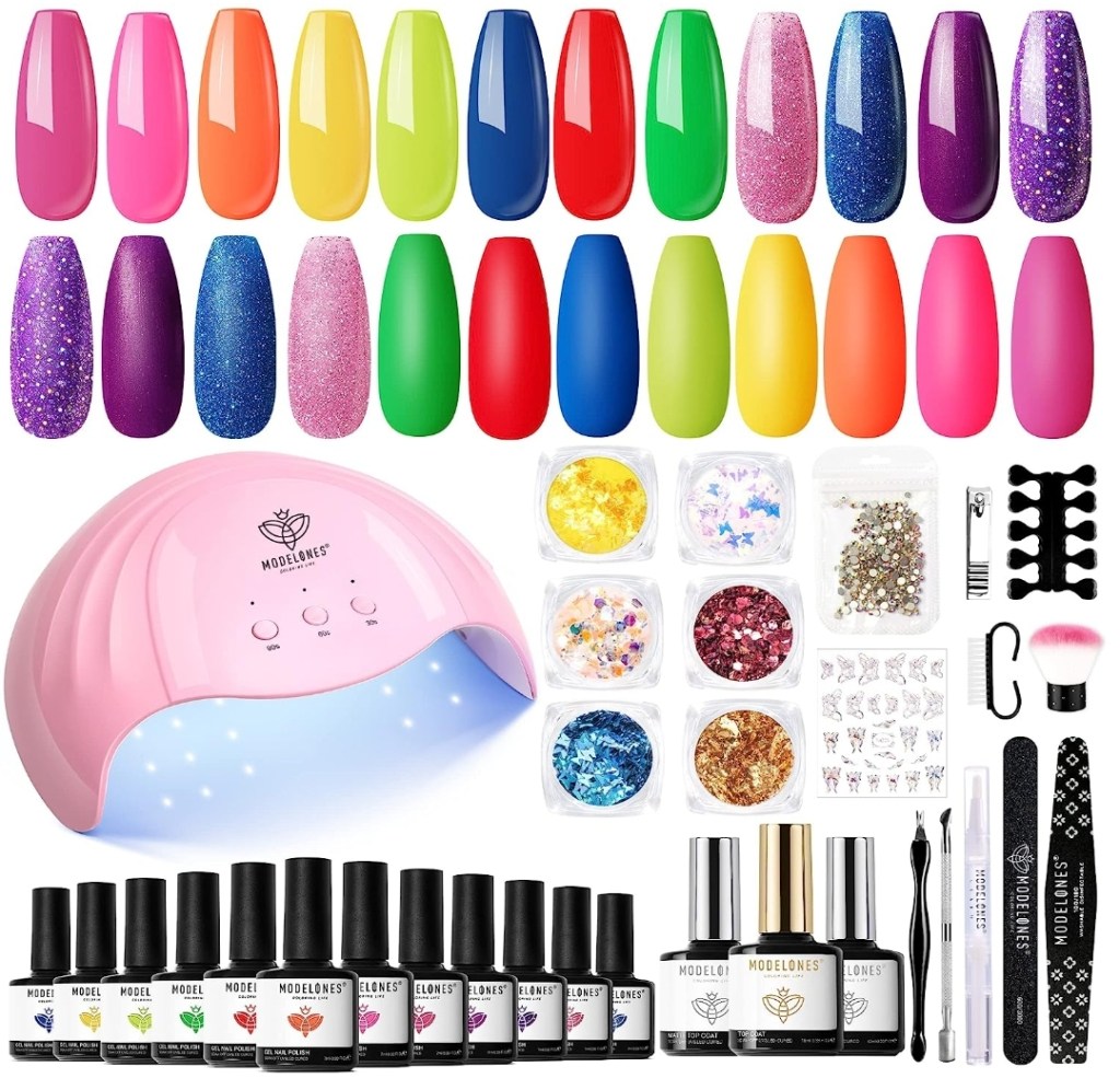 Modelones 35PCS Neon Gel Nail Polish Kit with U V Light 48W Nail Dryer,Tell us if you got it! #ad