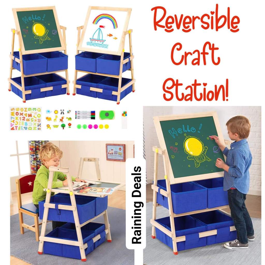 👩🎨🎨👨🏻🎨 An awesome savings on this versatile art board for kids! Reversible chalk-whiteboard with storage space for all their craft supplies! So fun for little artists!