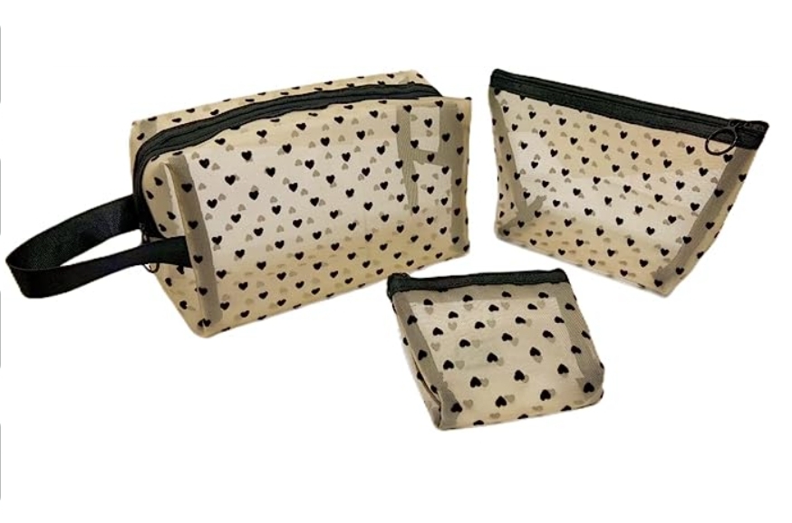 KKBGN 3 Pieces Heart Mesh Makeup Bags Set, Portable Travel Toiletry Bag Travel Makeup Organizer Bag Cosmetic Bags for Women clip 20% coup0n at checkout Tell us if you got it! #ad