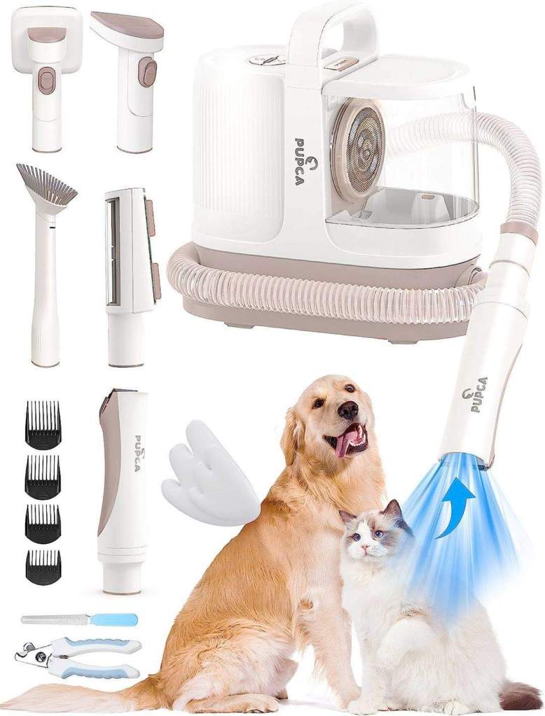 PUPCA Dog Grooming Kit, 7 in 1 Pet Vacuum Cleaner for Dogs Pet Hair Remover,