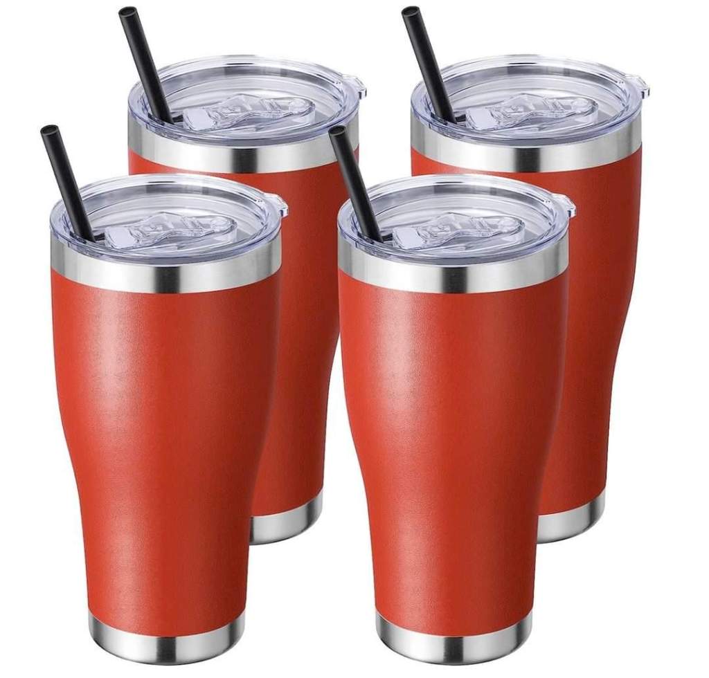 DOMICARE 30 oz Tumbler with Lid and Straw, Stainless Steel Tumblers Bulk, Insulated Vacuum Double Wall Coffee Travel Mug, Powder Coated Tumbler, Red 4 Pack Tell us if you got it! #ad
