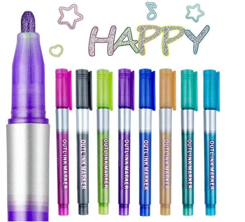 JFSJDF Outline Markers Pens, 8 Colors Double Line Markers Set -outline Metallic Markers Shimmer Markers for Art, Christmas, Greeting Tell us if you got it! #