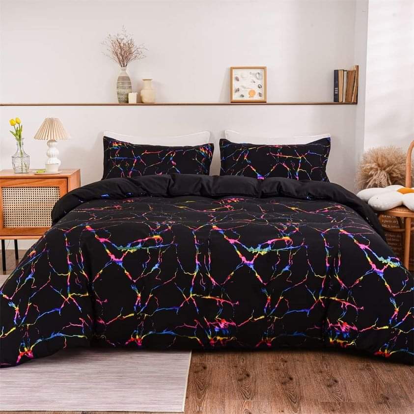 Holawakaka Multi-Color Metallic Marble Comforter Set King Size Foil Print Glitter Bedding Set (Multi-Color, King)