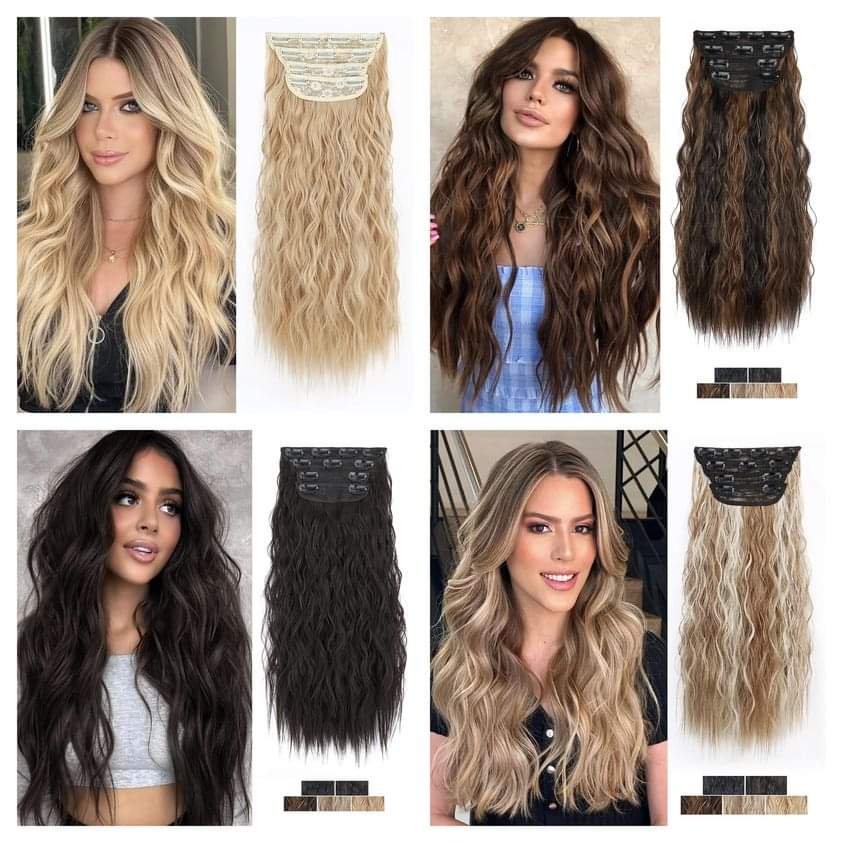 LOMMEL Clip in Hair Extensions Light Brown Mixed Blonde Hair Extensions Long Curly Wavy 4 PCS Synthetic Fiber Double Weft Natural & Blends Well Hair Extensions