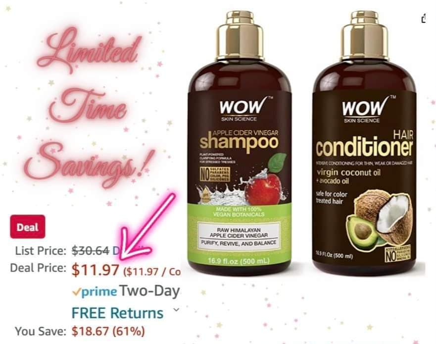 Save on the WOW Apple Cider Vinegar Shampoo & Hair Conditioner Set! We all know the benefits of Apple Cider Vinegar for our body when we ingest it but it’s amazing for the hair and skin as well.
