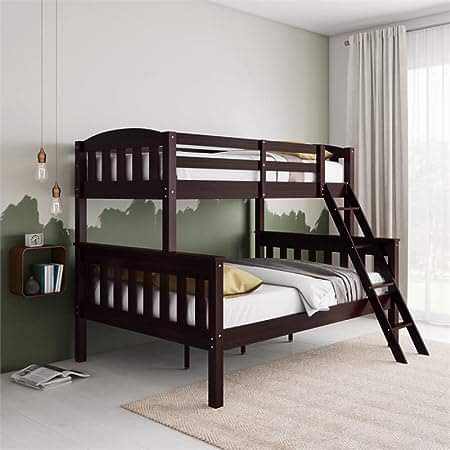 Dorel Living Airlie Solid Wood Bunk Beds Twin Over Full with Ladder and Guard Rail, Espresso