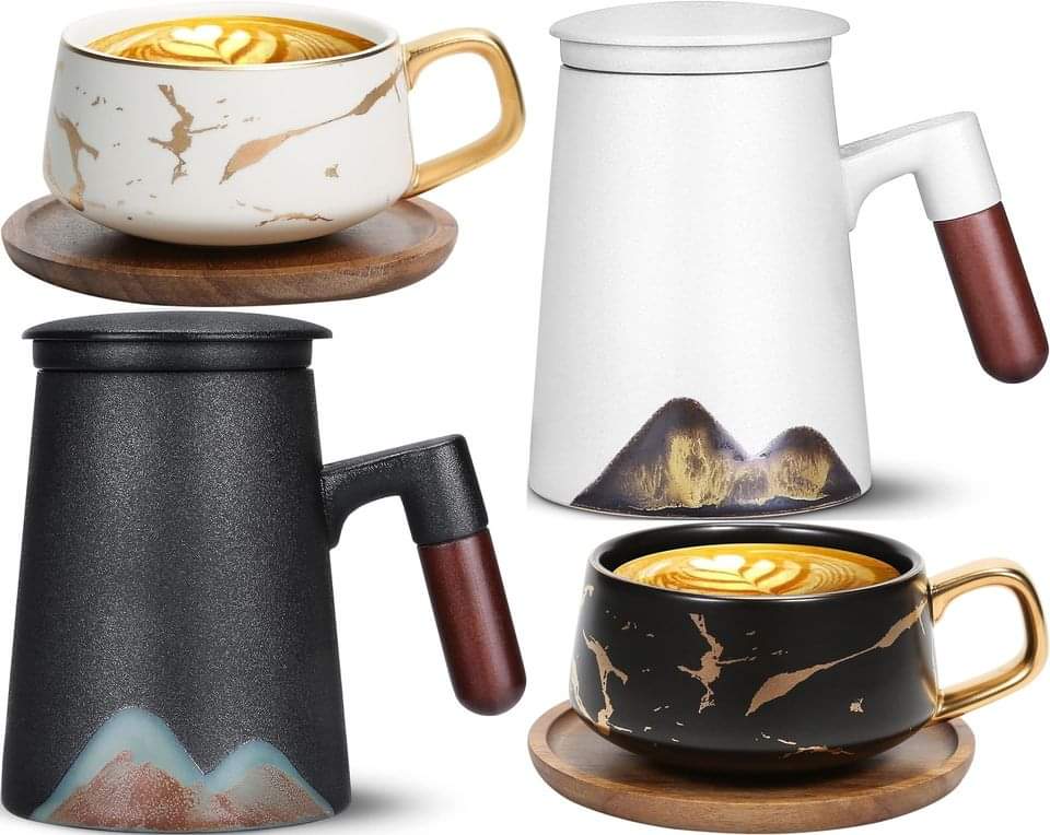 ENJOHOS 10 Oz Ceramic Tea Cup Coffee Cup Set / ENJOHOS Wooden handle Tea Mug Japanese Style Large Let me know if you grab #ad