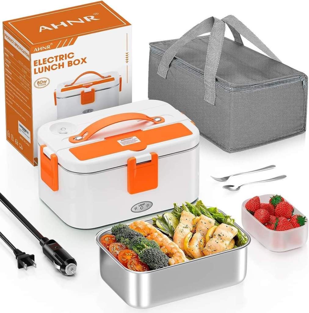 AHNR Electric Lunch Box 80W Food Heater, 3 IN 1 Portable Heated Food Warmer Lunch Box Leakproof for Car Truck Home Work with 1.8L Removable 304 Stainless Steel Container